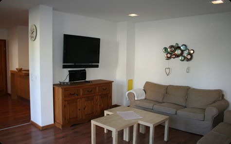 Im Erdgeschoss befindet sich der Eingang, Treppe zum Obergeschoss und die Toilette. Auch befinden sich das Wohnzimmer, Esszimmer und Küche mit reichlich Abstellraum. Im Erdgeschoß gibt es eine zweite Toilette, 2 Schlafzimmer mit Doppelbett und 1 Schlafzimmer mit 1 Doppelbett und 1 Stockbett, Fernsehen und DVD. (Dies ist nützlich für die Kinder). Im ersten Stock gibt es auch eine Dusche und ein Badezimmer mit doppelten Waschbecken und Dusche.